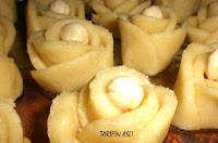 YAPILIŞI:Hamuru için gerekli tüm malzemeleri karıştırarak orta yumuşaklıkta bir hamur elde edilir.Düz bir zeminde merdane yardımı ile bir miktar hamur açılır.Çay bardağı ile yuvarlak şekiller kesilir.Yuvarlaklar yanyana gelecek şekilde dizilir ve yuvarlanır.Tam ortadan (bel kısmından) ikiye kesilir ve ik adet gül elde edilmiş olur.Ortalarına birer adet fındık yerleştirilir. 175 derece fırında hafif kızarana dek pişirilir.Şerbet ılık,tepsi sıcak olacak şekilde şerbeti dökülür.Afiyet olsun